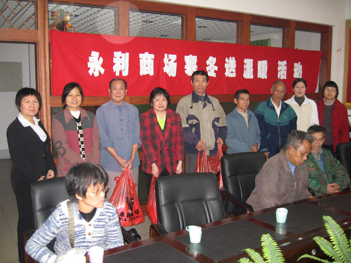 2009年春节前夕,永利商场在范罗岗社区进行120户困难家庭寒冬送温暖活动
