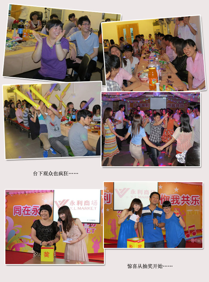 2012年6月,为丰富员工的娱乐生活,加强企业文化建设,提高员工凝聚力,公司举办主题为“同在永利·你我共乐”员工文娱晚会。晚会期间设有唱歌、玩游戏,幸运抽奖、跳舞等环节,不仅让大家分享了快乐,也增进同事之间的友谊。下面是员工在晚会中的精彩瞬间,让我们共同分享和回味这份美好的时光!