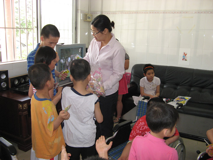 2011年儿童节到新会区福利院慰问,并送上儿童服装一百件及礼品一批。